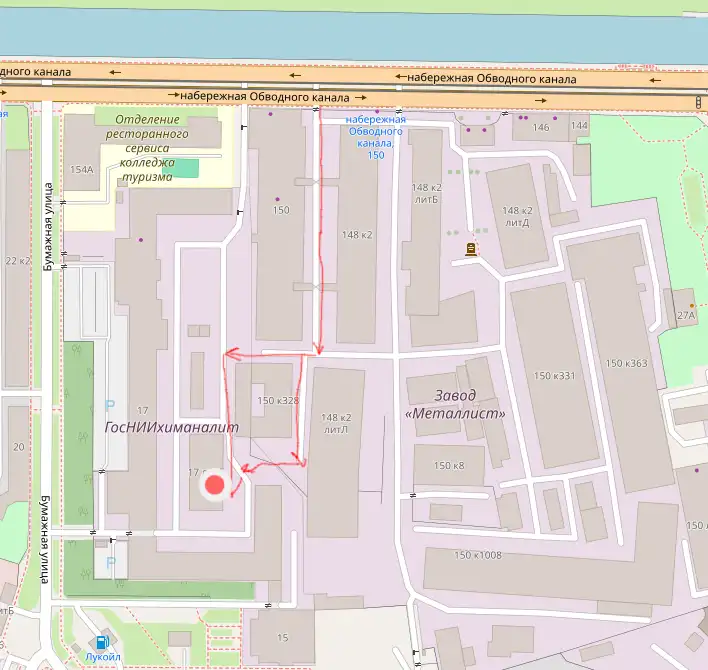 Вход в производство находится на набережной обводного канала 150 , станции метро Нарвская в пешей доступности . От метро 15-20 минут , а дальше 500 метров до производства .